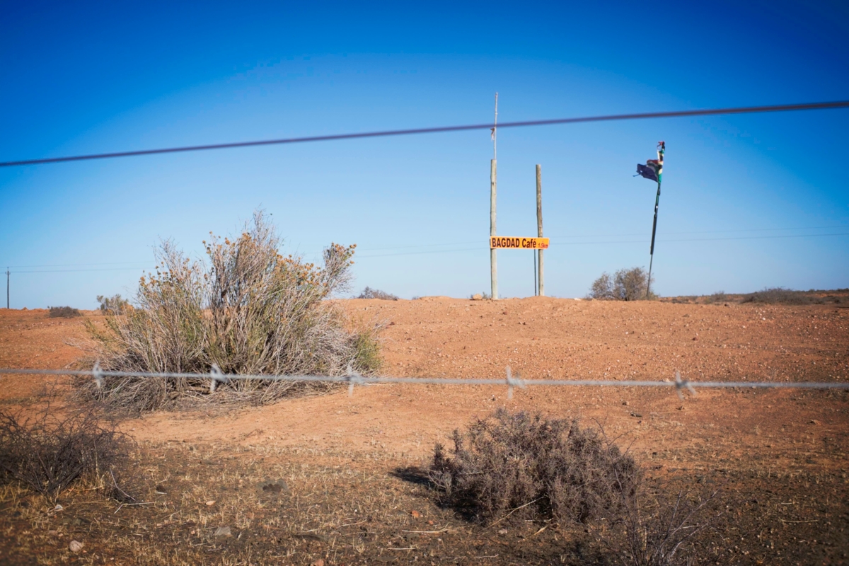 Signs on the R27 outside Vanrhynsdorp advertising Bagdad Cafe